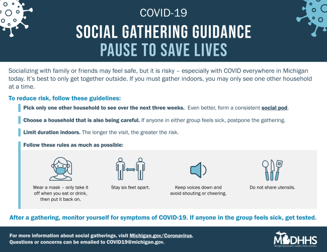 The best action that individuals can take at this time is to follow the new state MDHHS orders that were issued on November 18, which can be found on Michigan.gov/coronavirus.