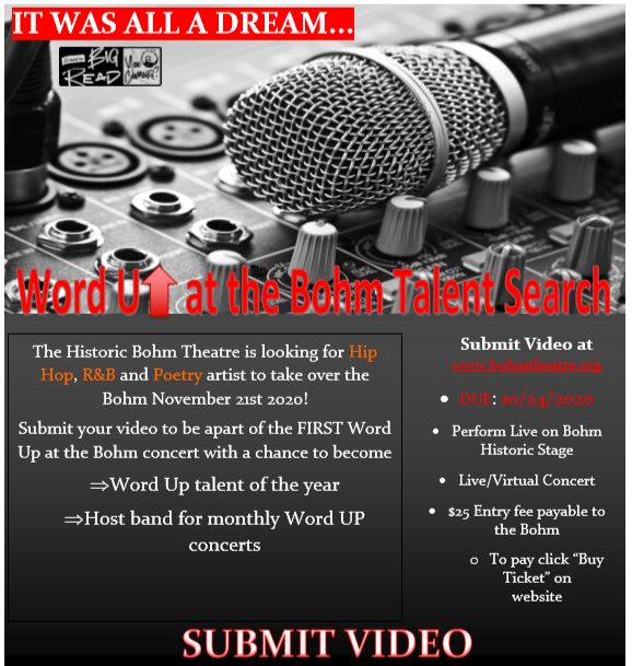 The Historic Bohm Theatre is looking for Hip Hop, and Poetry artist to take over the Bohm!