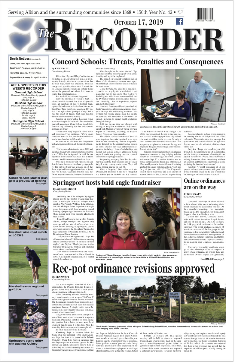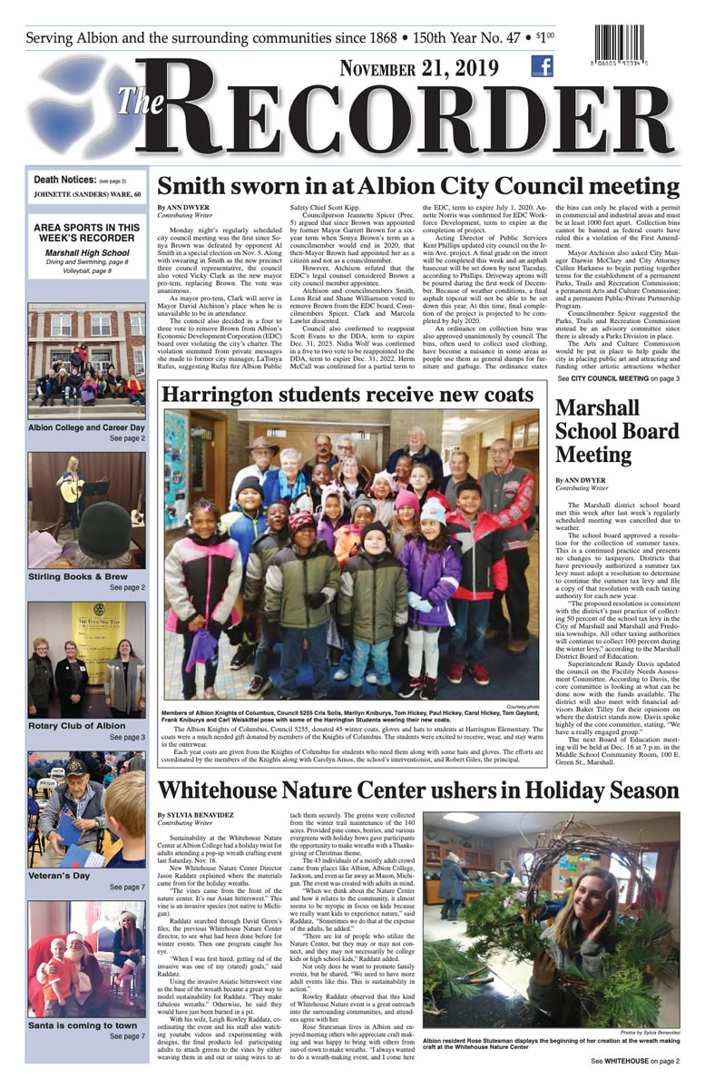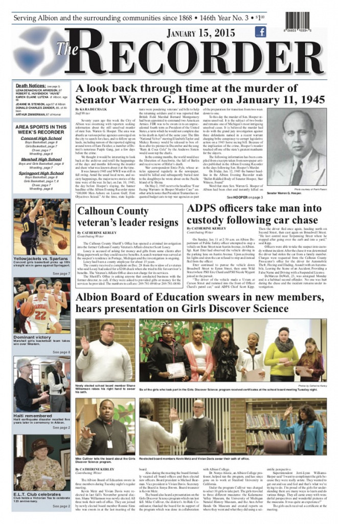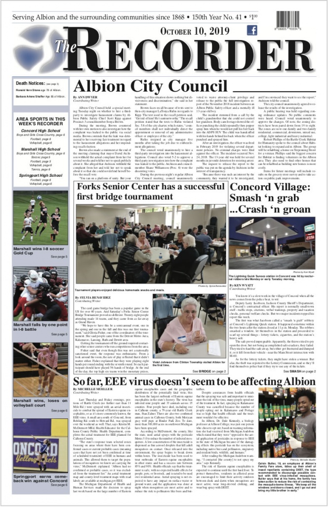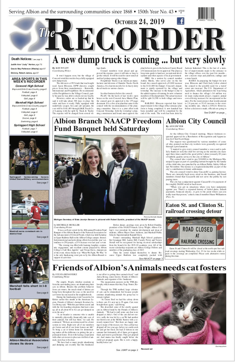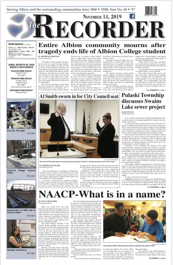 Watch for more news from The Recorder as separate stories here at AlbionMich.net.